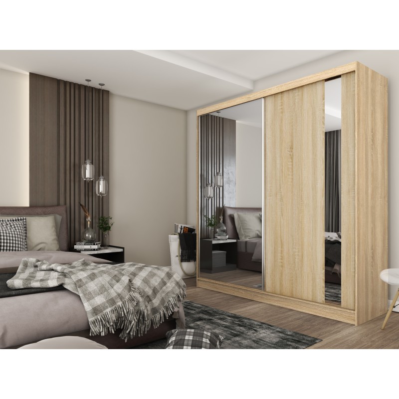 Szafa Przesuwna GRAZIA 200 cm z Lustrem Szafa Dwudrzwiowa Dąb sonoma