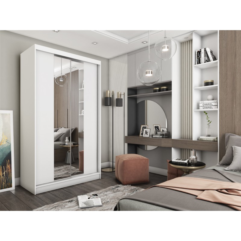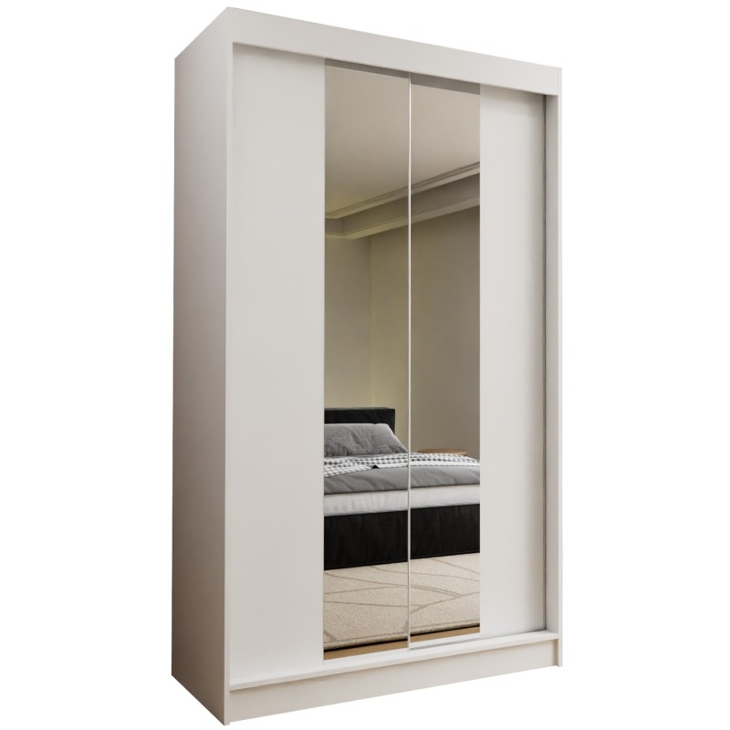 Szafa Przesuwna LUCENZA 120 cm z Lustrem Szafa Dwudrzwiowa Biała