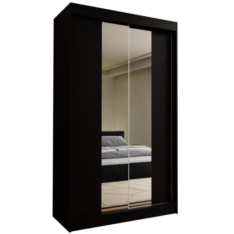 Szafa Przesuwna LUCENZA 120 cm z Lustrem Szafa Dwudrzwiowa Czarna