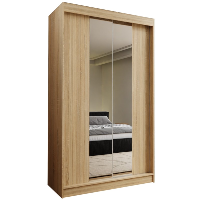 Szafa Przesuwna LUCENZA 120 cm z Lustrem Szafa Dwudrzwiowa Dąb sonoma