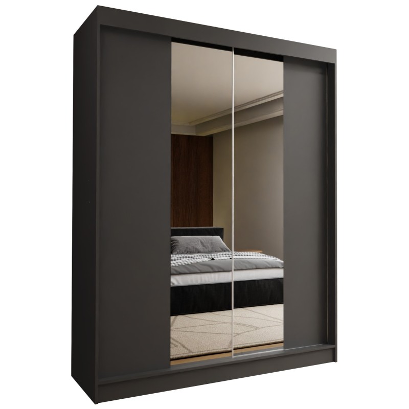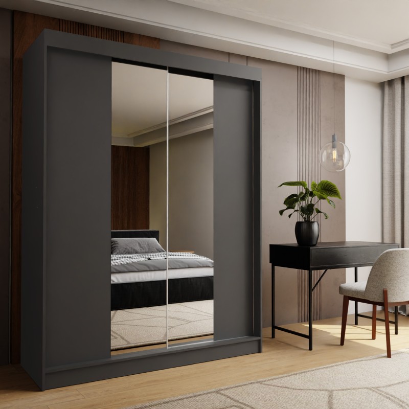 Szafa Przesuwna LUCENZA 160 cm z Lustrem Szafa Dwudrzwiowa Szara