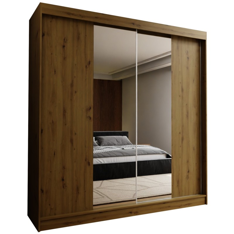 Szafa Przesuwna LUCENZA 200 cm z Lustrem Szafa Dwudrzwiowa Dąb artisan
