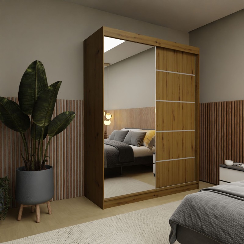 Postaw na nowoczesną szafę MIRELLA, która idealnie dopasuje się do Twojej sypialni i wprowadzi styl oraz harmonię do każdego wnętrza. To stylowy mebel, który łączy elegancję z funkcjonalnością i pomaga utrzymać porządek każdego dnia.