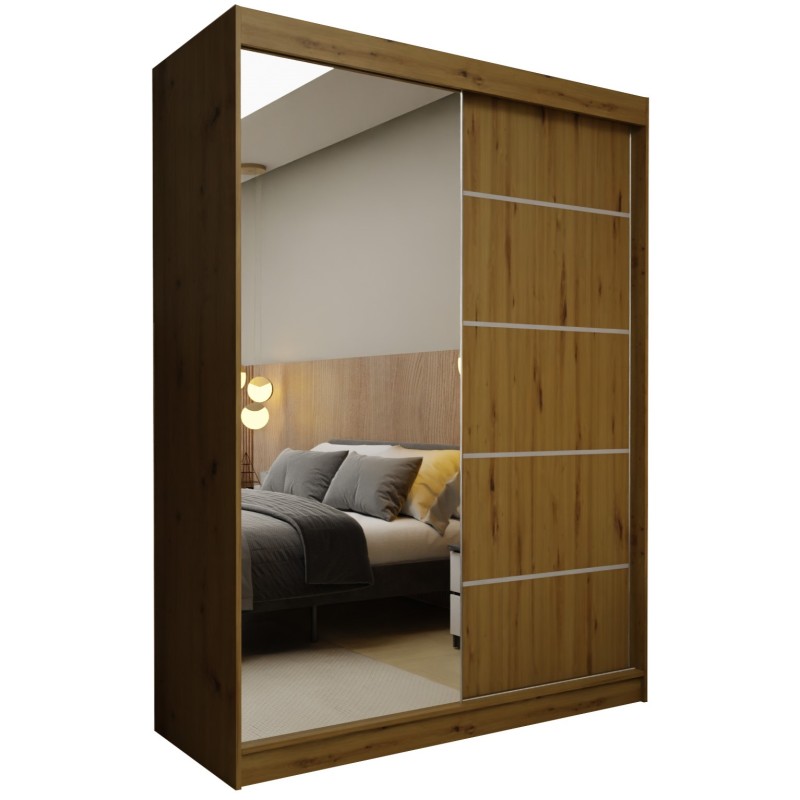 Szafa Przesuwna MIRELLA 160 cm z Lustrem Szafa Dwudrzwiowa Dąb artisan