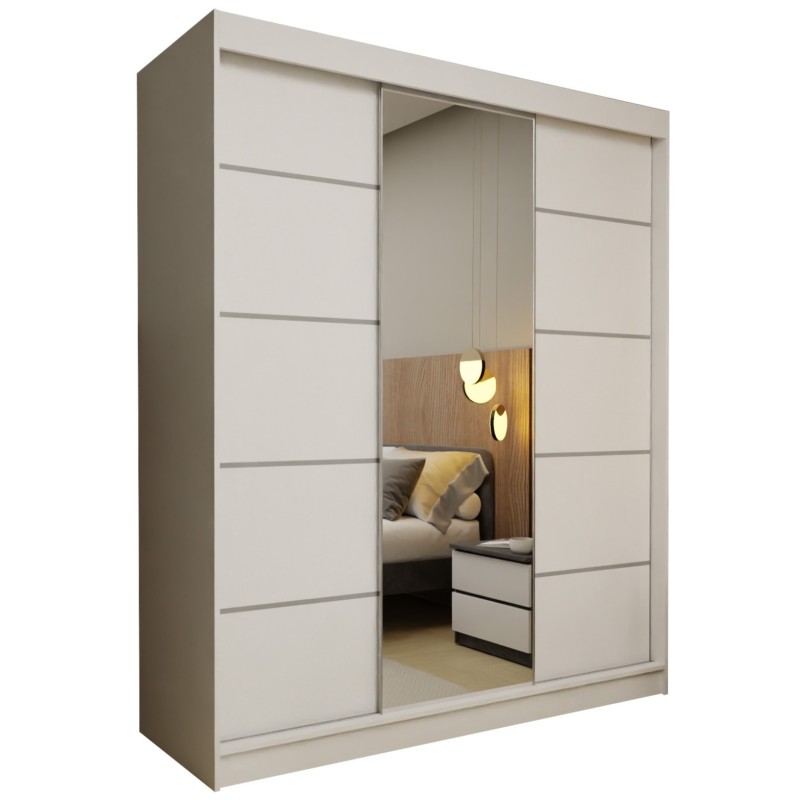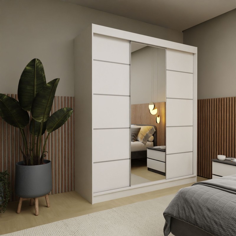Szafa Przesuwna MIRELLA 180 cm z Lustrem Szafa Trzydrzwiowa Biała
