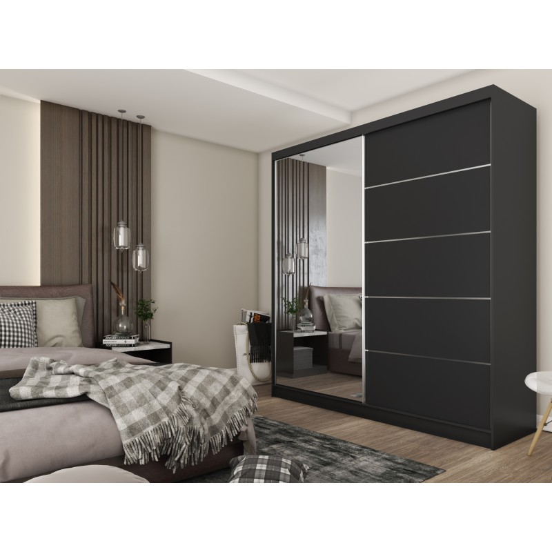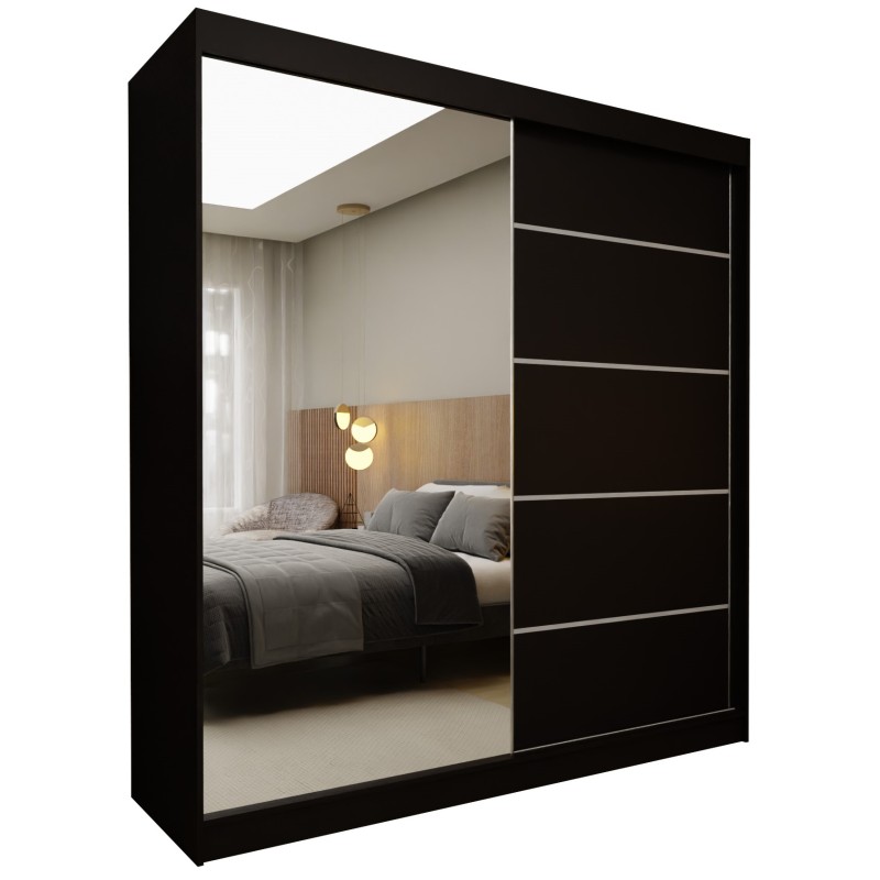 Szafa Przesuwna MIRELLA 200 cm z Lustrem Szafa Dwudrzwiowa Czarna