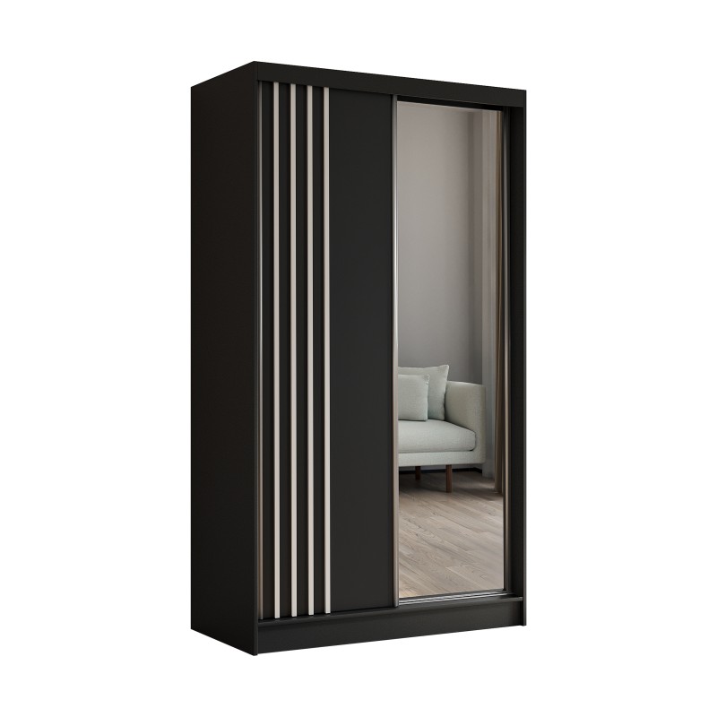 Szafa Przesuwna NELVIA 120 cm z Lustrem Szafa Dwudrzwiowa Czarna