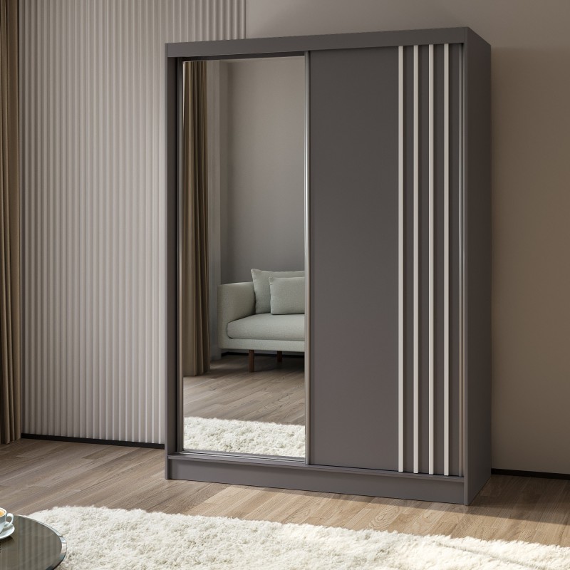Szafa Przesuwna NELVIA 150 cm z Lustrem Szafa Dwudrzwiowa Szara