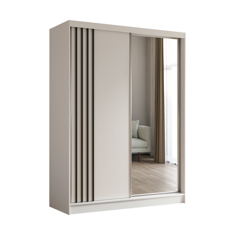 Szafa Przesuwna NELVIA 160 cm z Lustrem Szafa Dwudrzwiowa Biała