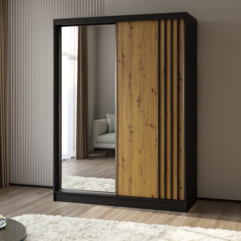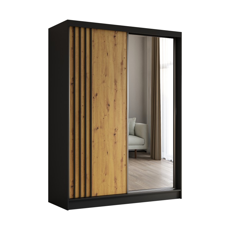 Szafa Przesuwna NELVIA 160 cm z Lustrem Szafa Dwudrzwiowa Czarna
