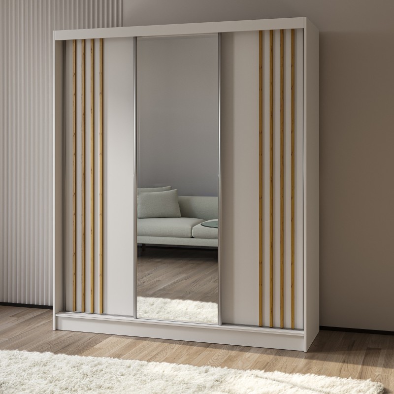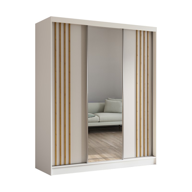 Szafa Przesuwna NELVIA 180 cm z Lustrem Szafa Trzydrzwiowa Biała