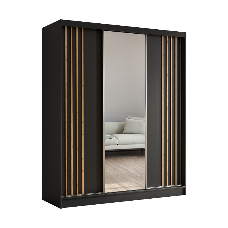 Szafa Przesuwna NELVIA 180 cm z Lustrem Szafa Trzydrzwiowa Czarna