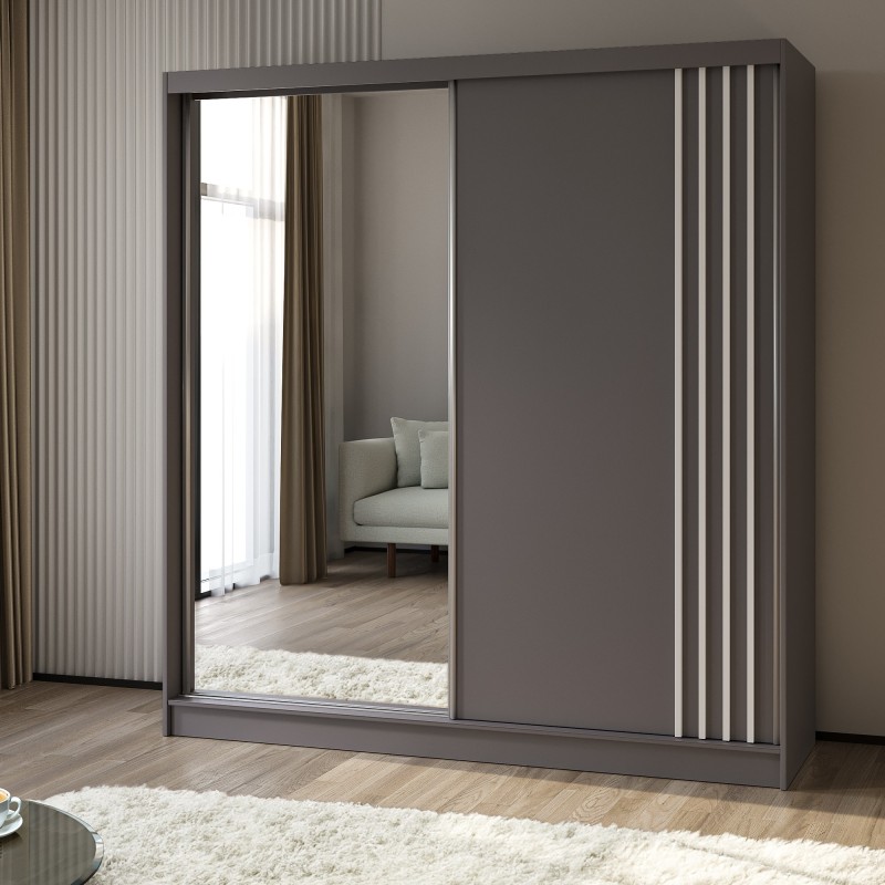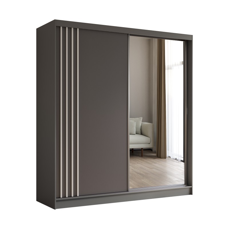 Szafa Przesuwna NELVIA 200 cm z Lustrem Szafa Dwudrzwiowa Szara