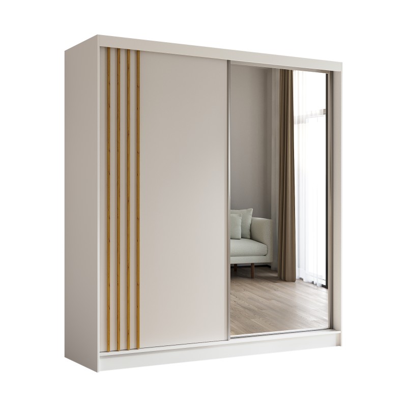 Szafa Przesuwna NELVIA 200 cm z Lustrem Szafa Dwudrzwiowa Biała