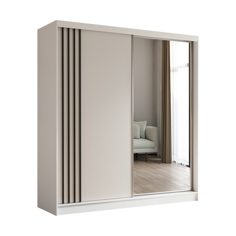 Szafa Przesuwna NELVIA 200 cm z Lustrem Szafa Dwudrzwiowa Biała