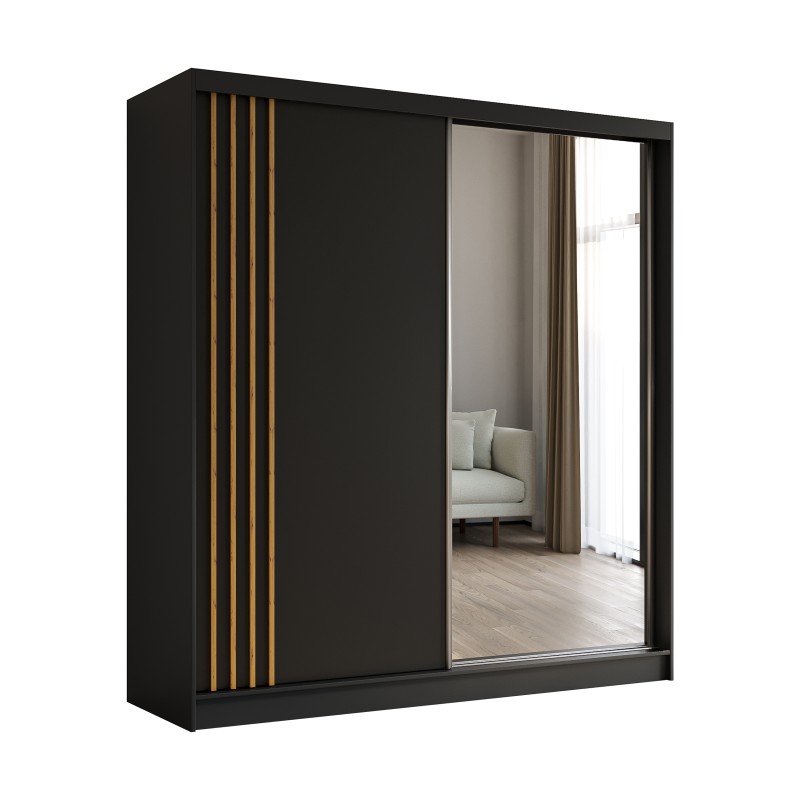 Szafa Przesuwna NELVIA 200 cm z Lustrem Szafa Dwudrzwiowa Czarna