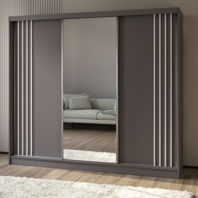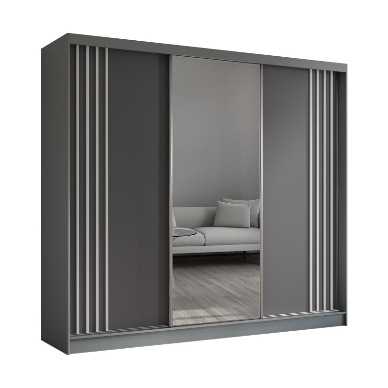 Szafa Przesuwna NELVIA 240 cm z Lustrem Szafa Trzydrzwiowa Szara