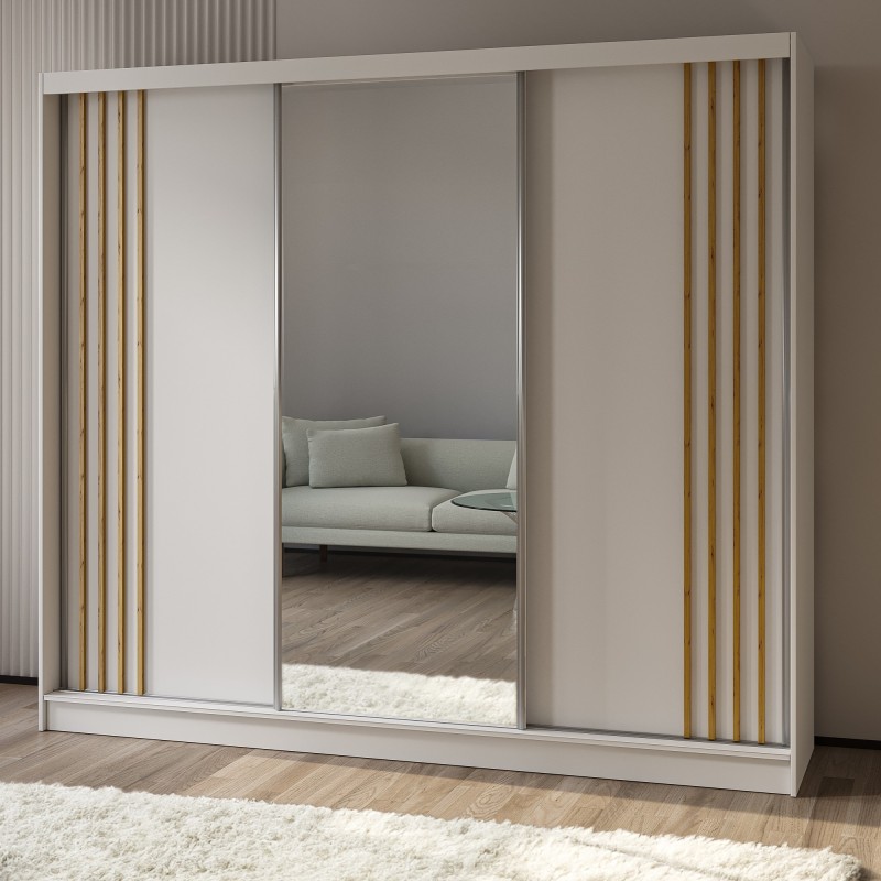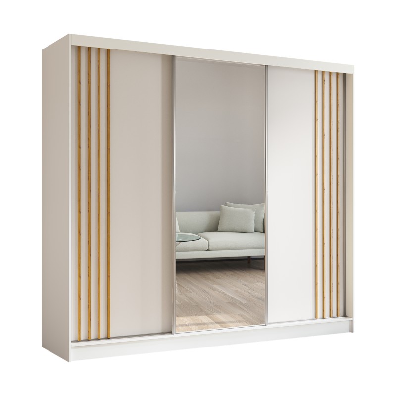 Szafa Przesuwna NELVIA 240 cm z Lustrem Szafa Trzydrzwiowa Biała