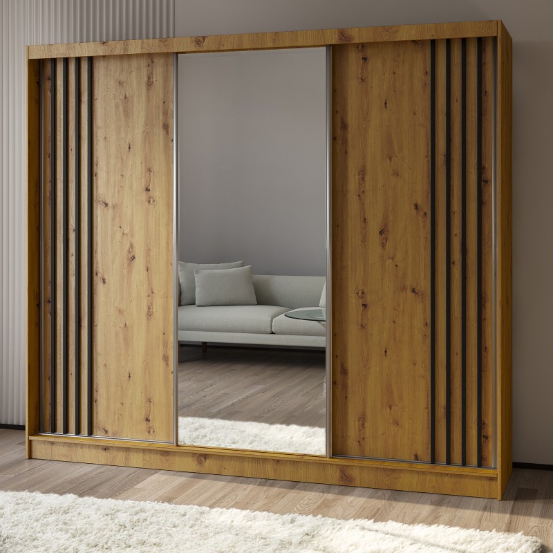 Szafa Przesuwna NELVIA 240 cm z Lustrem Szafa Trzydrzwiowa Dąb artisan
