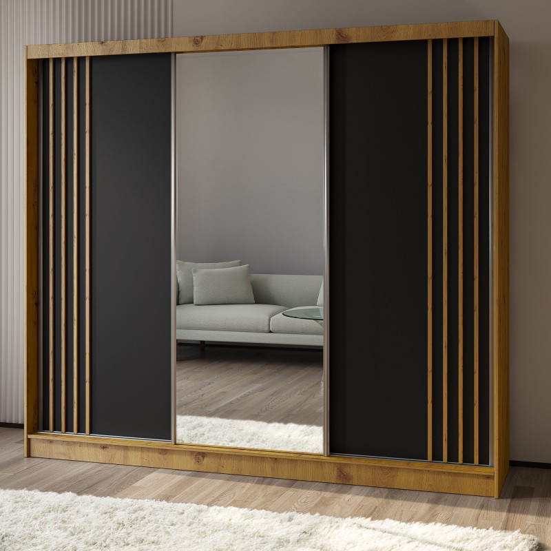 Szafa Przesuwna NELVIA 240 cm z Lustrem Szafa Trzydrzwiowa Dąb artisan
