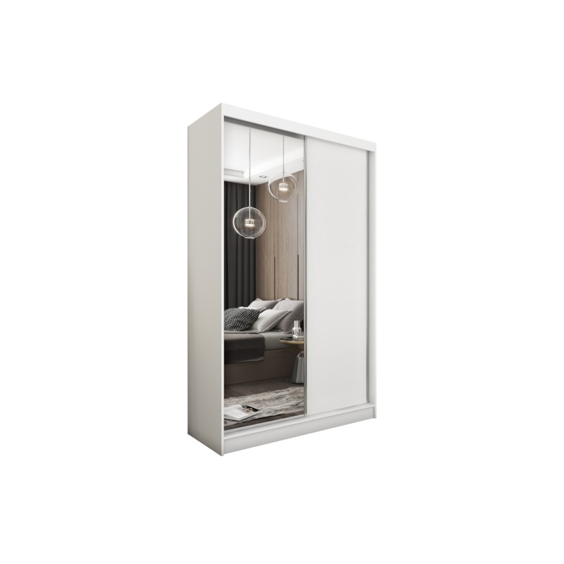 Szafa Przesuwna PATRIZIA 120 cm z Lustrem Szafa Dwudrzwiowa Biała