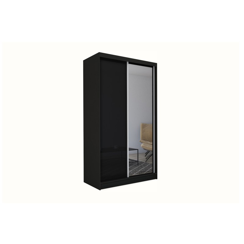 Szafa Przesuwna PATRIZIA 150 cm z Lustrem Szafa Dwudrzwiowa Czarna