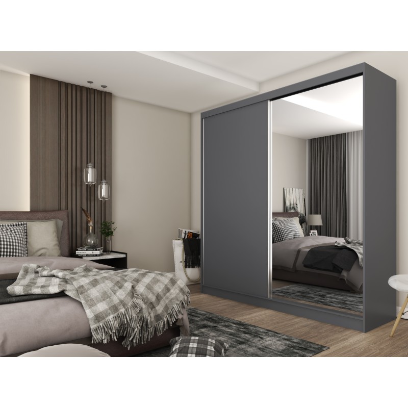 Szafa Przesuwna PATRIZIA 200 cm z Lustrem Szafa Dwudrzwiowa Szara