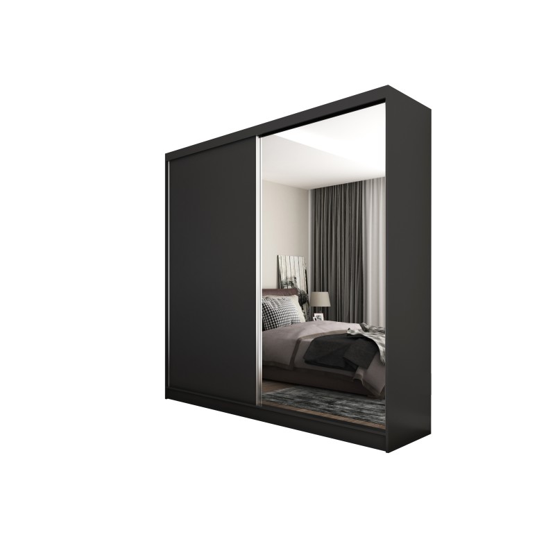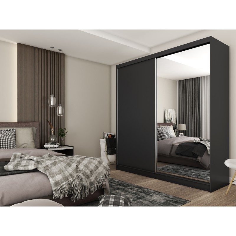 Szafa Przesuwna PATRIZIA 200 cm z Lustrem Szafa Dwudrzwiowa Czarna