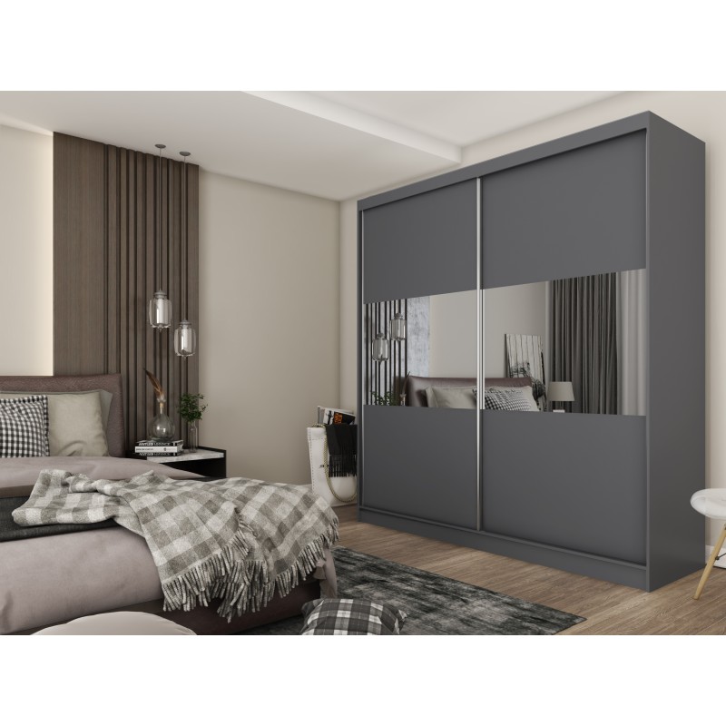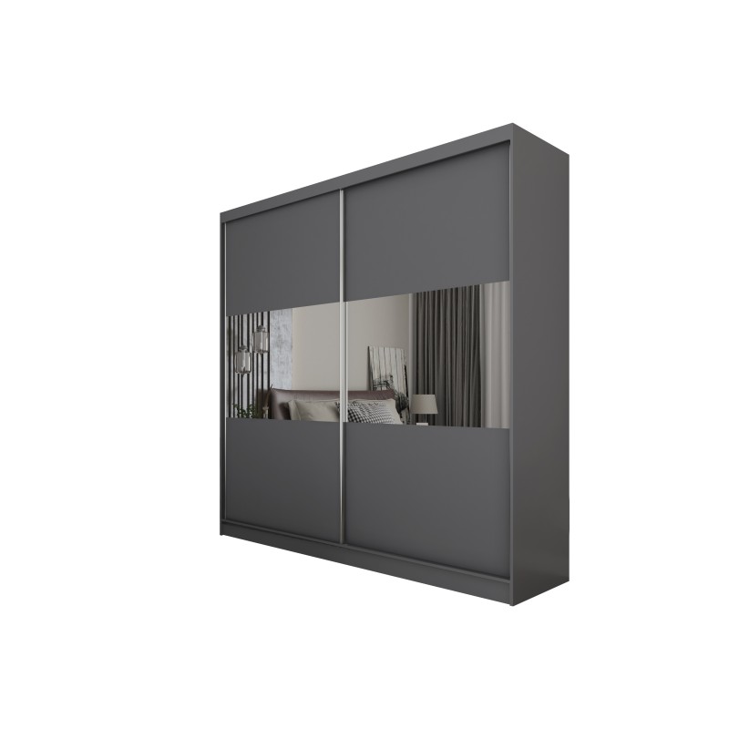 Szafa Przesuwna ROSALIA 200 cm z Lustrem Szafa Dwudrzwiowa Szara