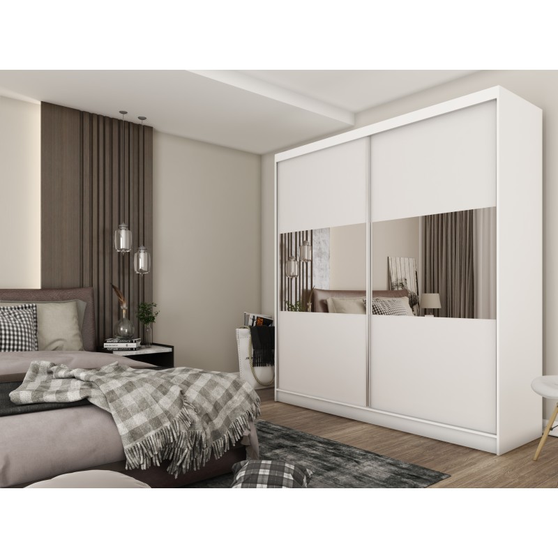 Szafa Przesuwna ROSALIA 200 cm z Lustrem Szafa Dwudrzwiowa Biała