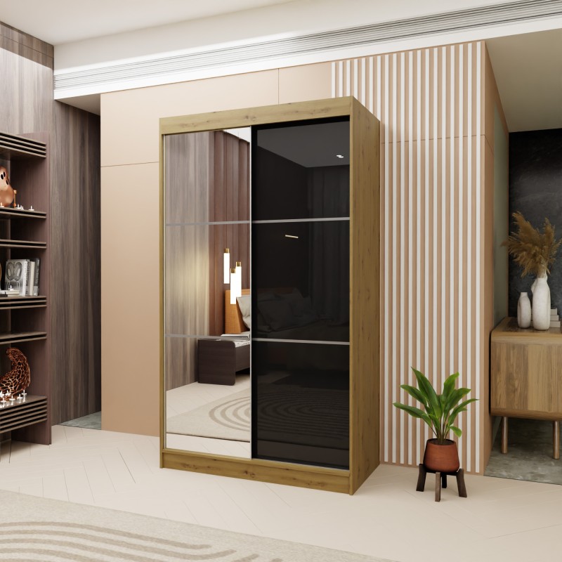 Szafa Przesuwna VITALE 120 cm z Lustrem Szafa Dwudrzwiowa Dąb artisan