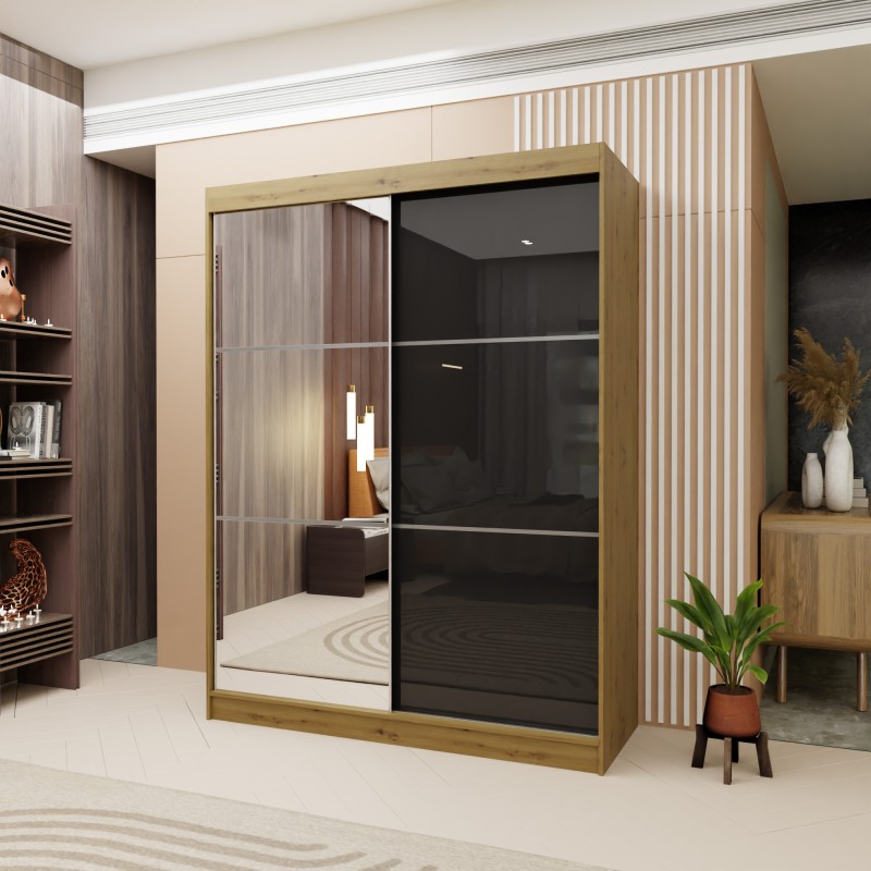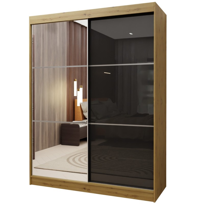Szafa Przesuwna VITALE 160 cm z Lustrem Szafa Dwudrzwiowa Dąb artisan
