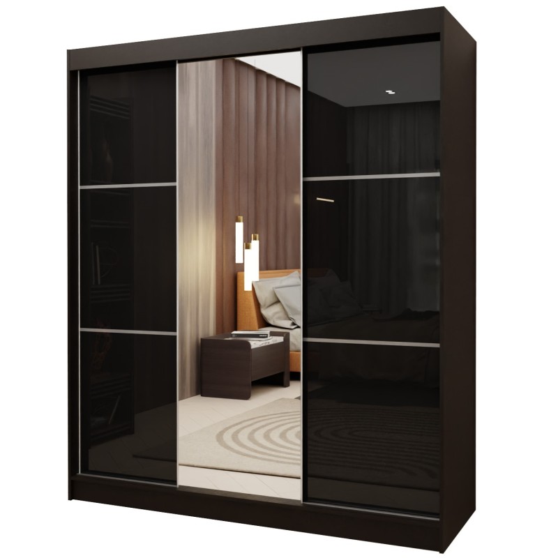 Szafa Przesuwna VITALE 180 cm z Lustrem Szafa Trzydrzwiowa Czarna