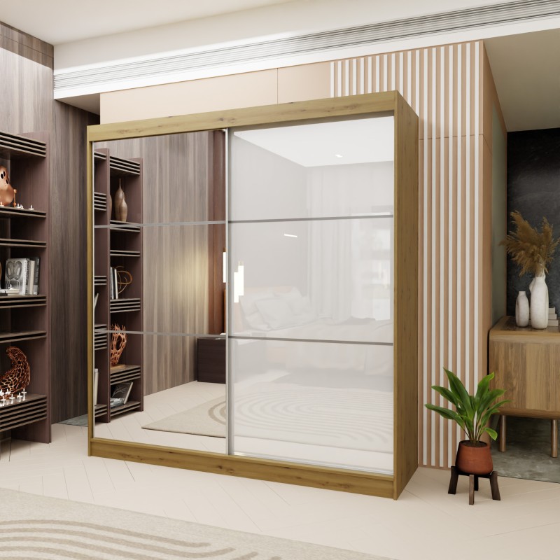 Szafa Przesuwna VITALE 200 cm z Lustrem Szafa Dwudrzwiowa Dąb artisan