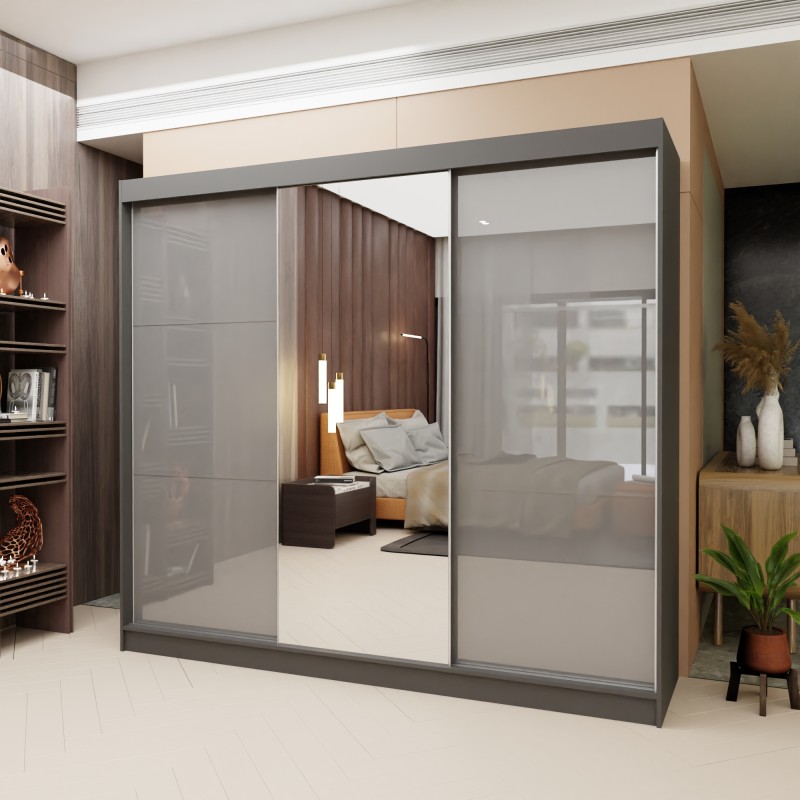 Szafa Przesuwna VITALE 240 cm z Lustrem Szafa Trzydrzwiowa Szara