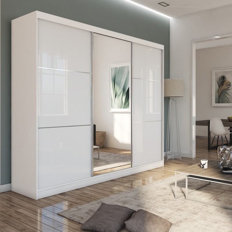 Szafa Przesuwna VITALE 240 cm z Lustrem Szafa Trzydrzwiowa Biała
