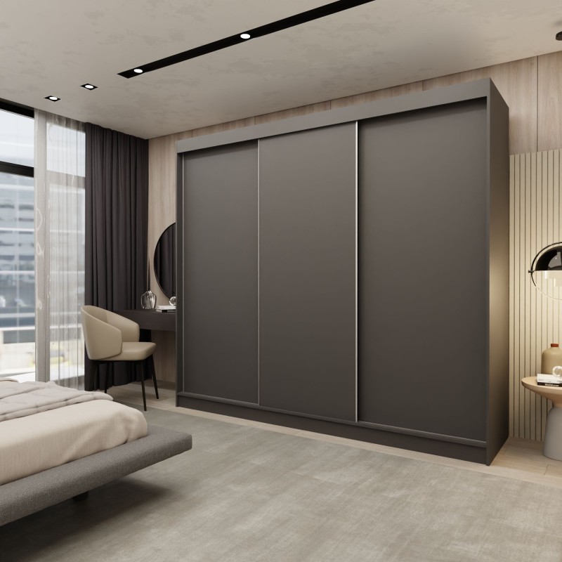 Szafa Przesuwna SOFIA 240 cm Szafa Trzydrzwiowa Szara