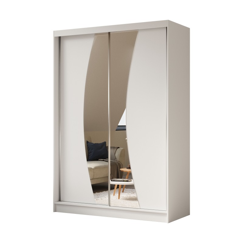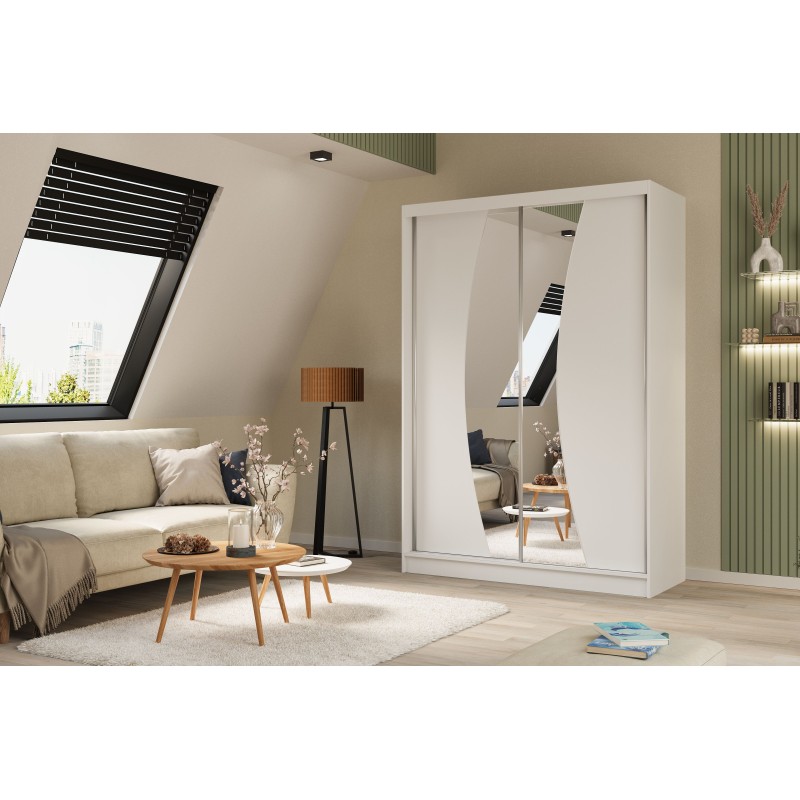 Szafa Przesuwna VOCE 150 cm z Lustrem Szafa Dwudrzwiowa Biała