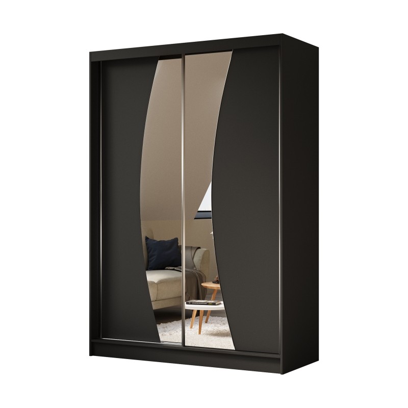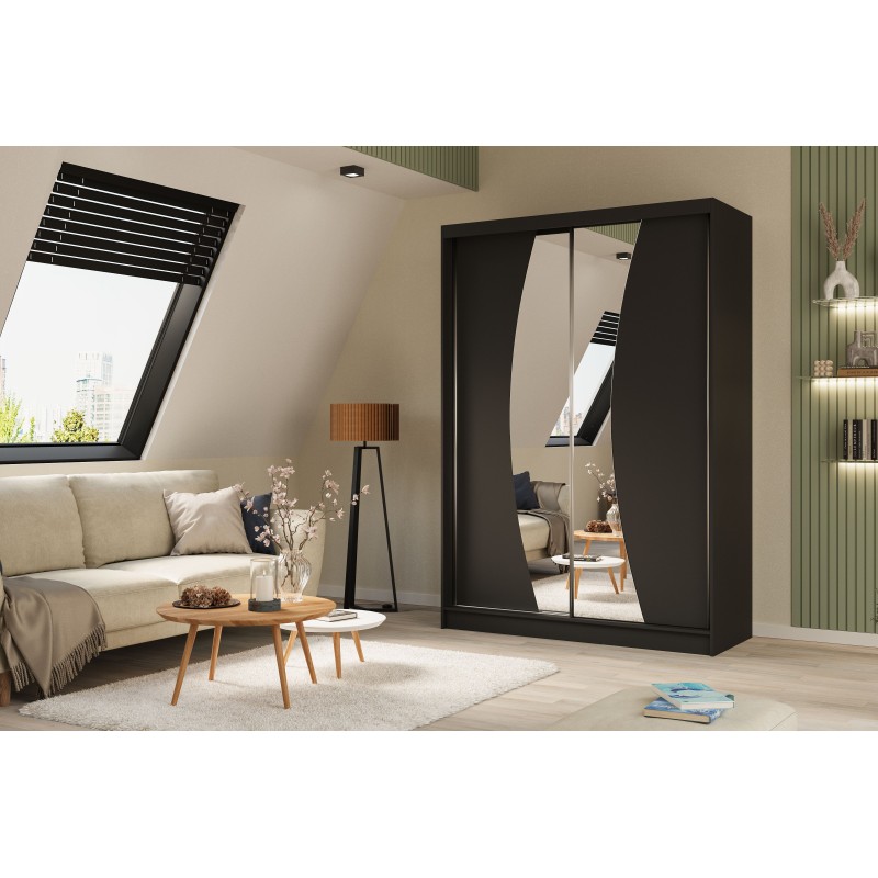 Szafa Przesuwna VOCE 150 cm z Lustrem Szafa Dwudrzwiowa Czarna