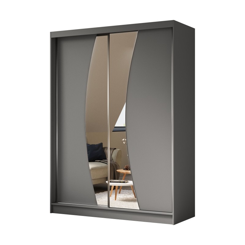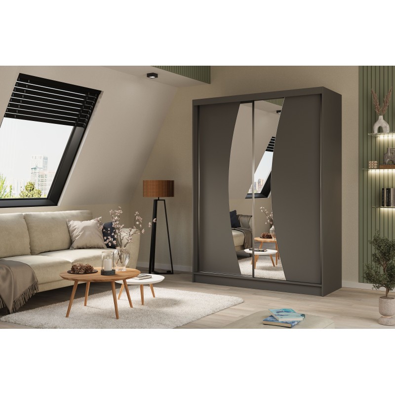 Szafa Przesuwna VOCE 160 cm z Lustrem Szafa Dwudrzwiowa Szara