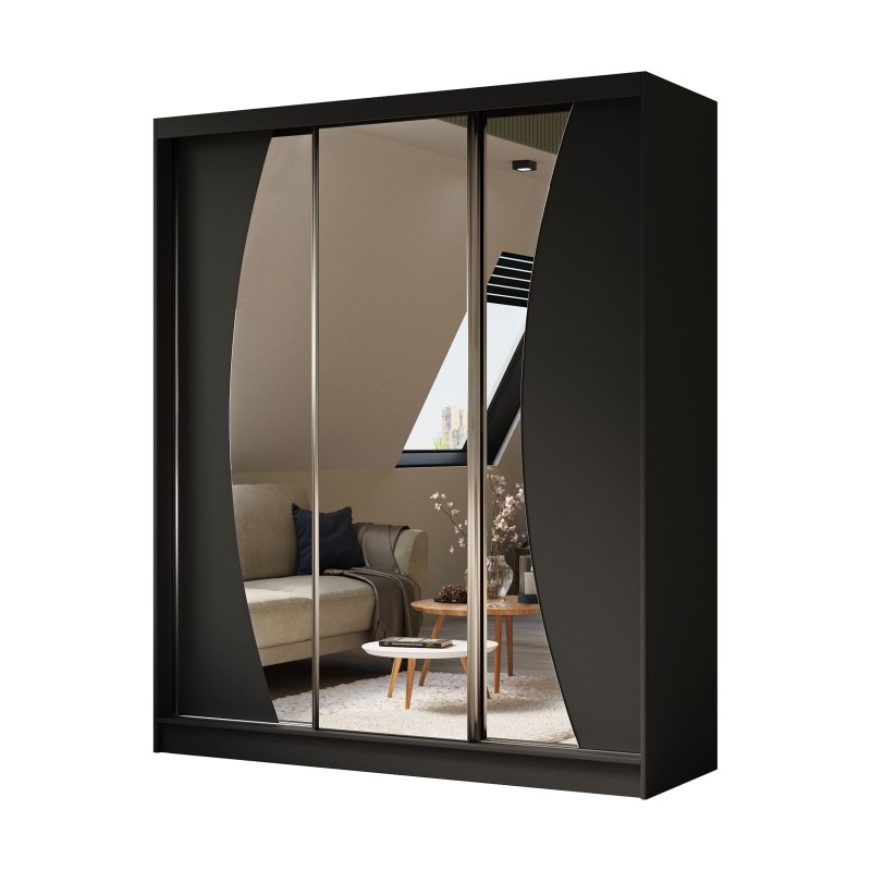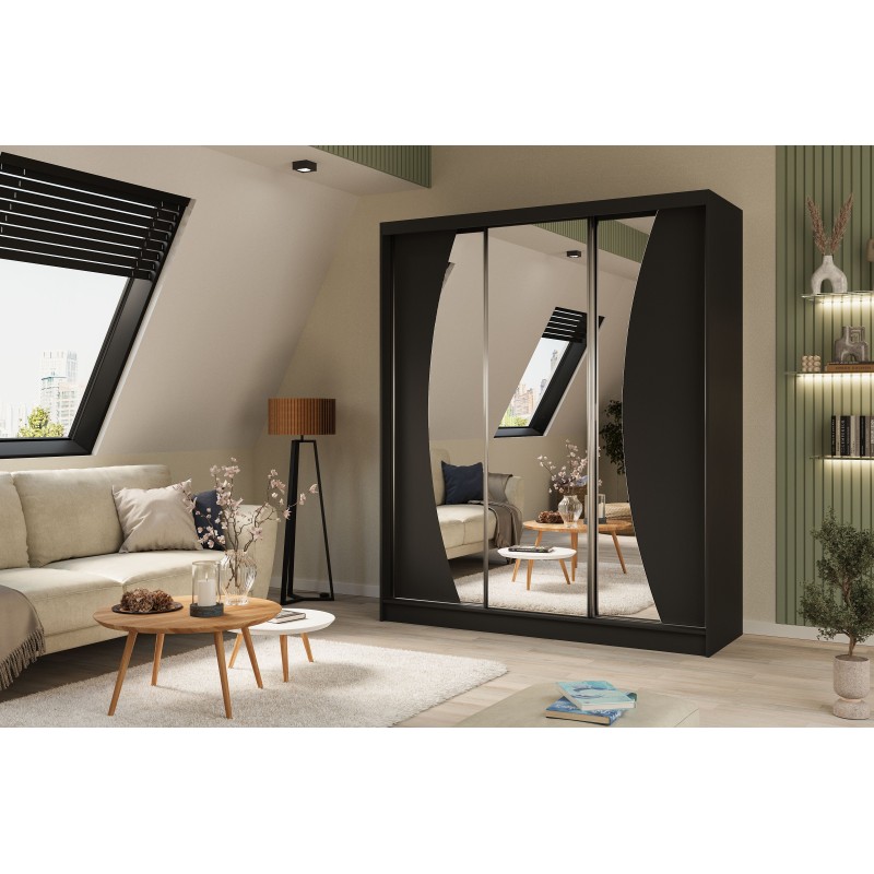 Szafa Przesuwna VOCE 180 cm z Lustrem Szafa Trzydrzwiowa Czarna
