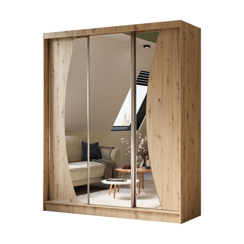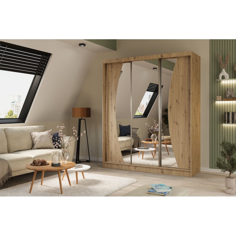 Szafa Przesuwna VOCE 180 cm z Lustrem Szafa Trzydrzwiowa Dąb artisan