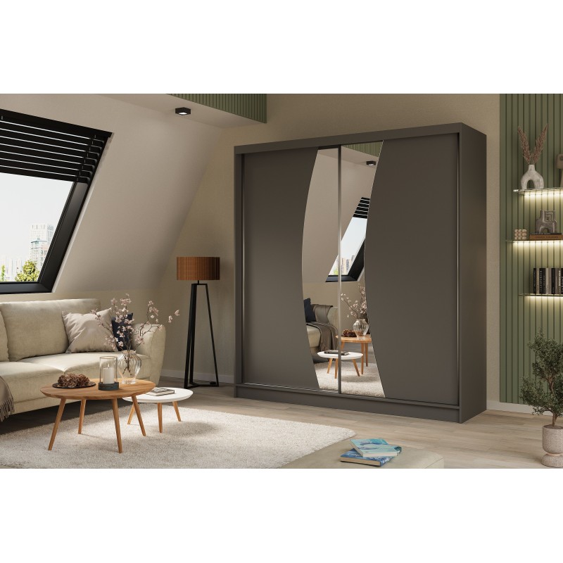 Szafa Przesuwna VOCE 200 cm z Lustrem Szafa Dwudrzwiowa Szara