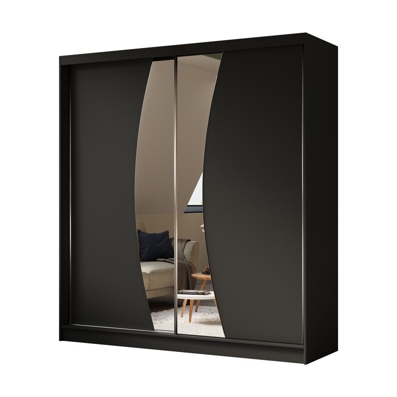 Szafa Przesuwna VOCE 200 cm z Lustrem Szafa Dwudrzwiowa Czarna