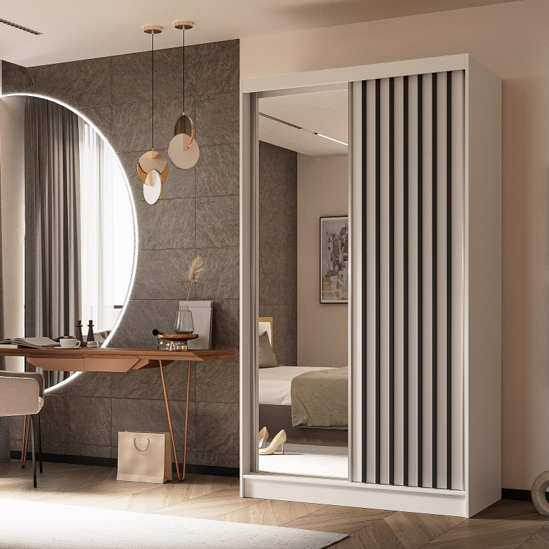 Szafa Przesuwna LAMELLO 120 cm z Lustrem Szafa Dwudrzwiowa Biała