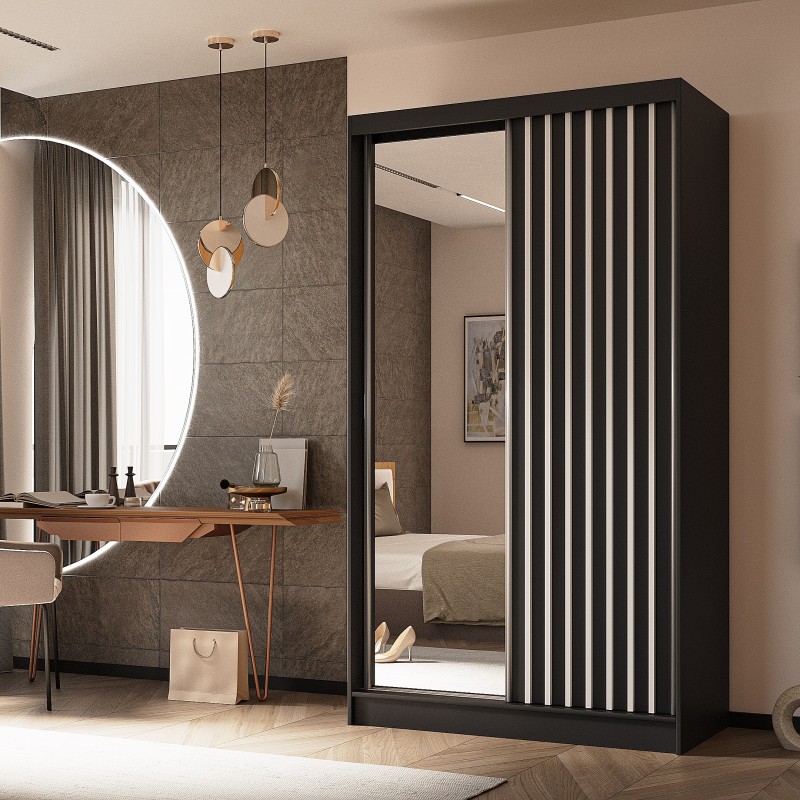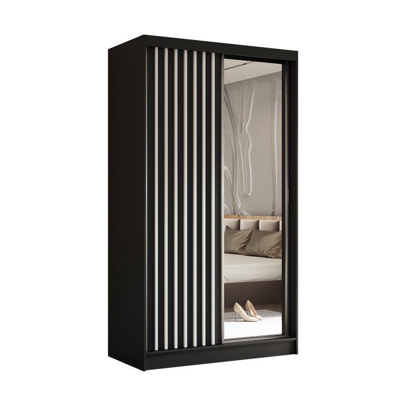 Szafa Przesuwna LAMELLO 120 cm z Lustrem Szafa Dwudrzwiowa Czarna