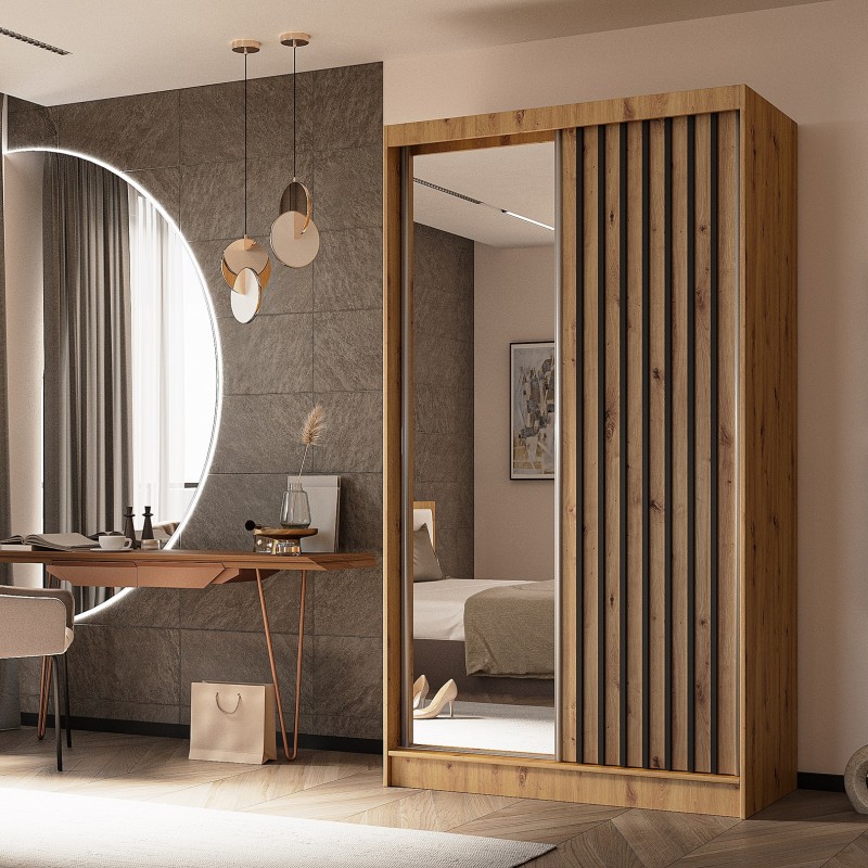 Szafa Przesuwna LAMELLO 120 cm z Lustrem Szafa Dwudrzwiowa Dąb artisan