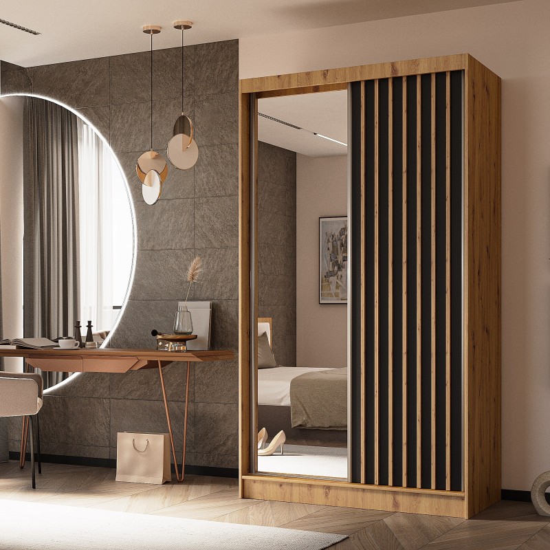 Szafa Przesuwna LAMELLO 120 cm z Lustrem Szafa Dwudrzwiowa Dąb artisan