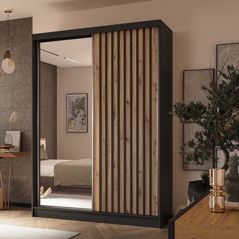 Szafa Przesuwna LAMELLO 150 cm z Lustrem Szafa Dwudrzwiowa Czarna