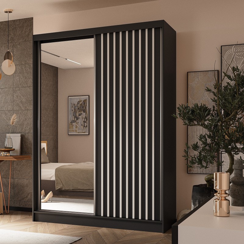 Szafa Przesuwna LAMELLO 150 cm z Lustrem Szafa Dwudrzwiowa Czarna